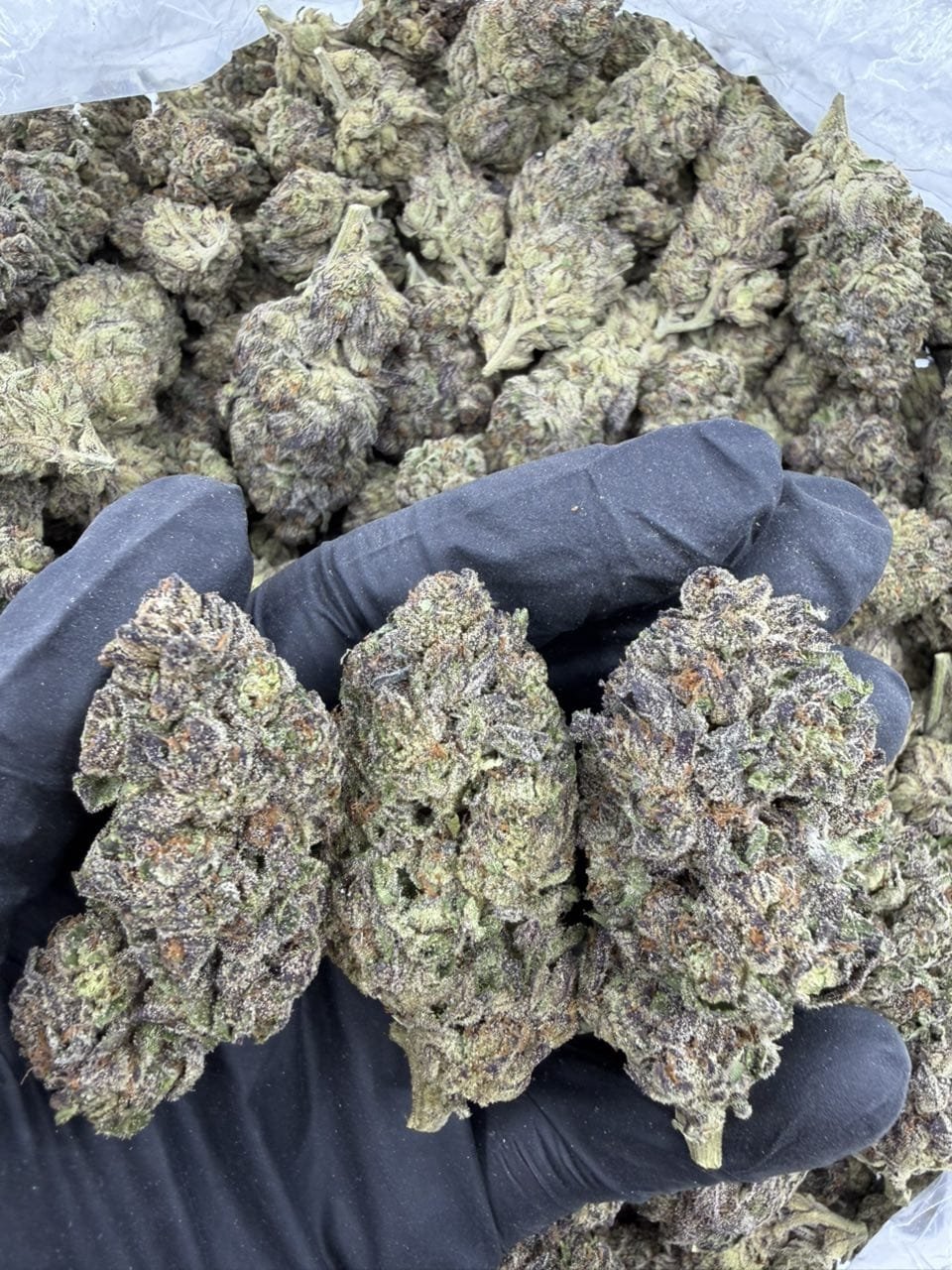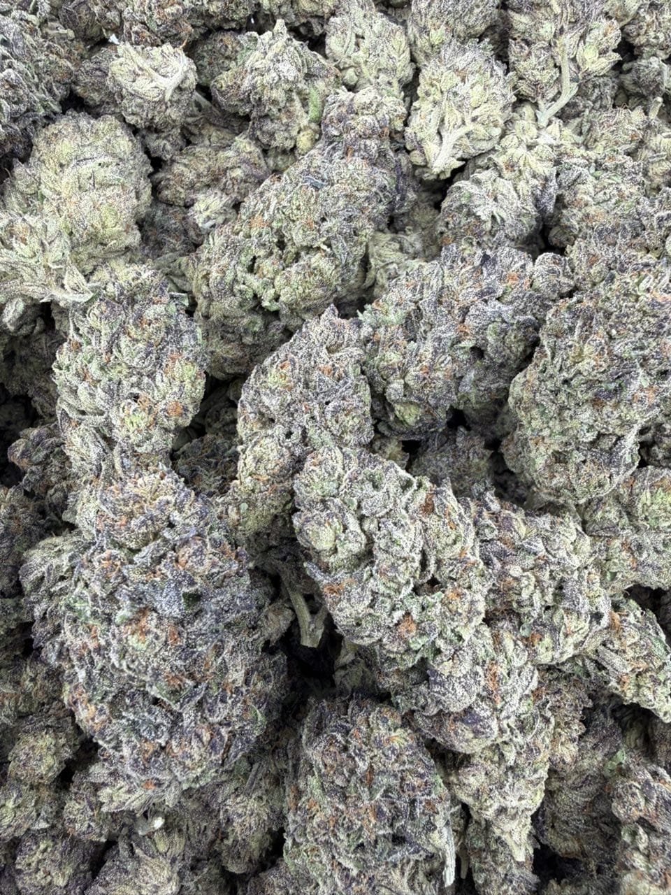 • Frosty, purple‑tinted buds