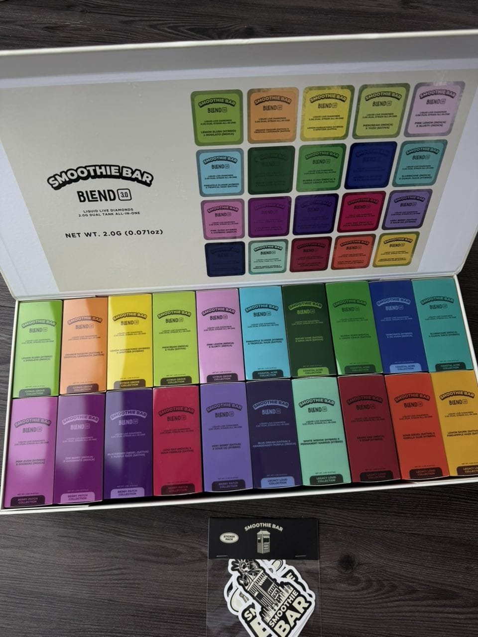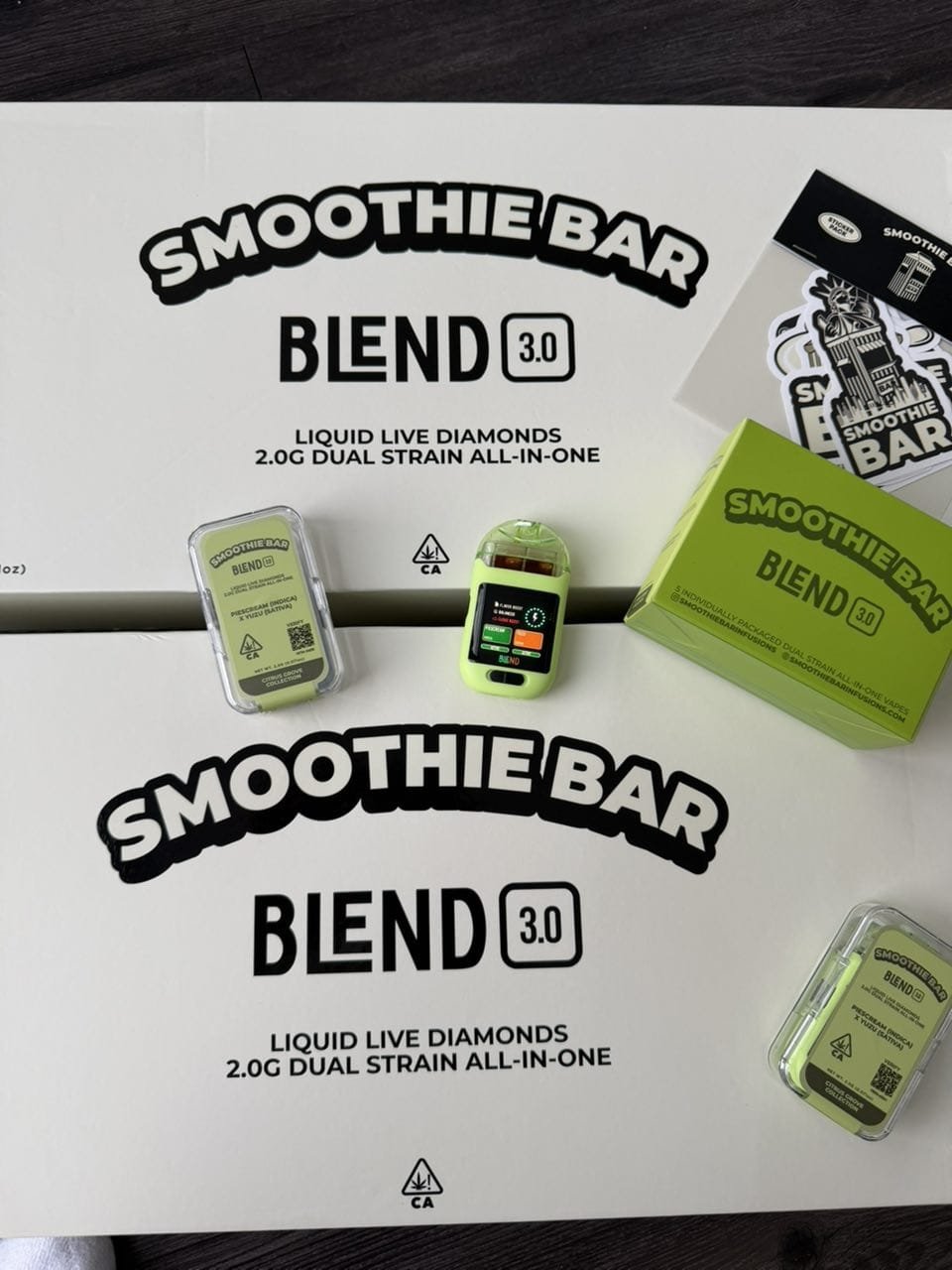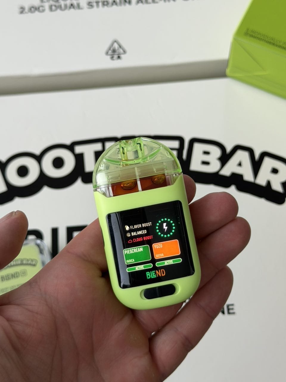 Smoothie Bar Blend Vape sits in the new wave of premium disposables that are trying to be more than just a tank of distillate and a cheap battery. It’s built as a complete “experience device”: two tanks, two strains, live resin plus liquid diamonds, a digital display, and a flavor‑first oil that tastes like the original strains rather than generic “vape oil.”