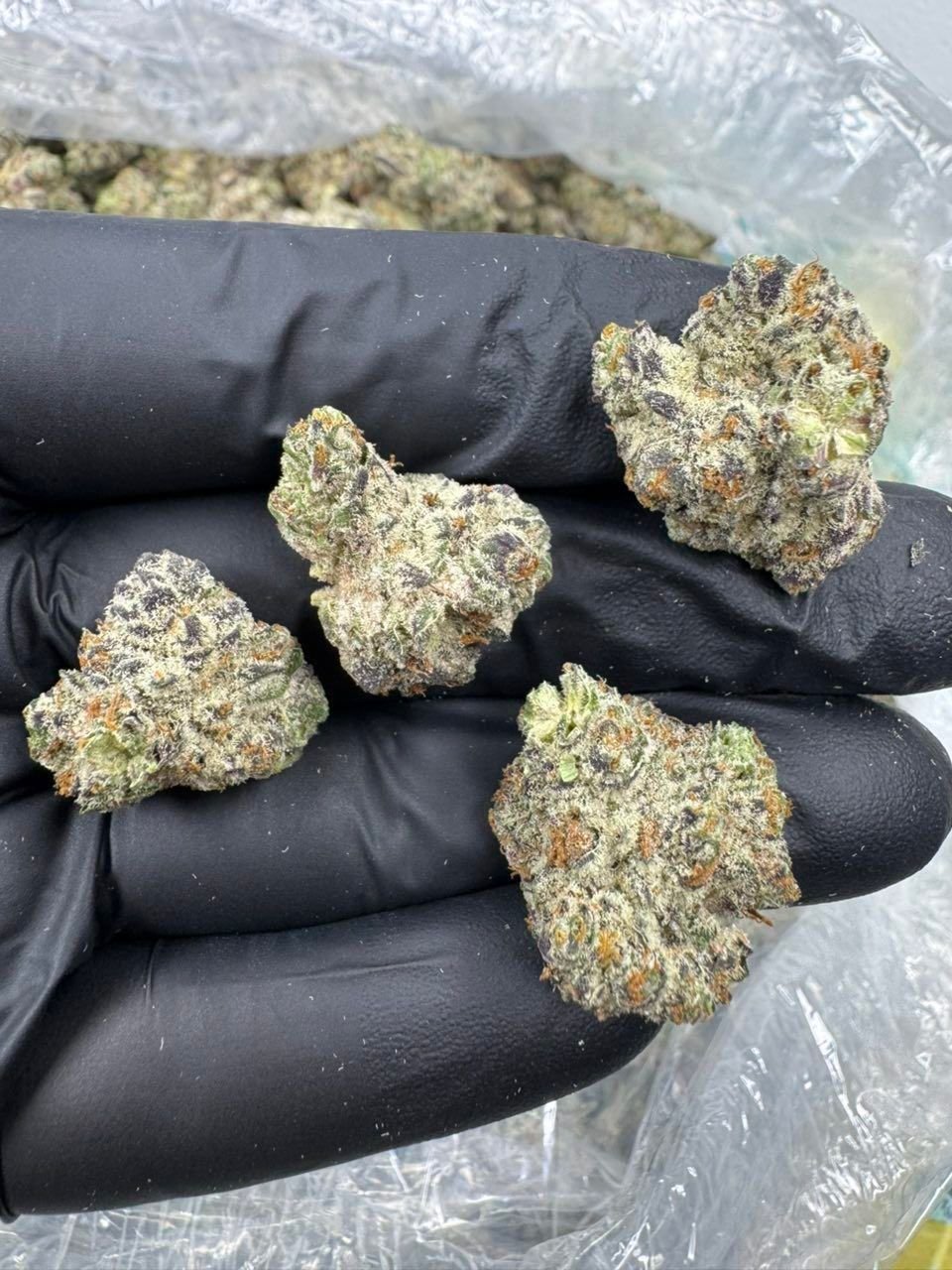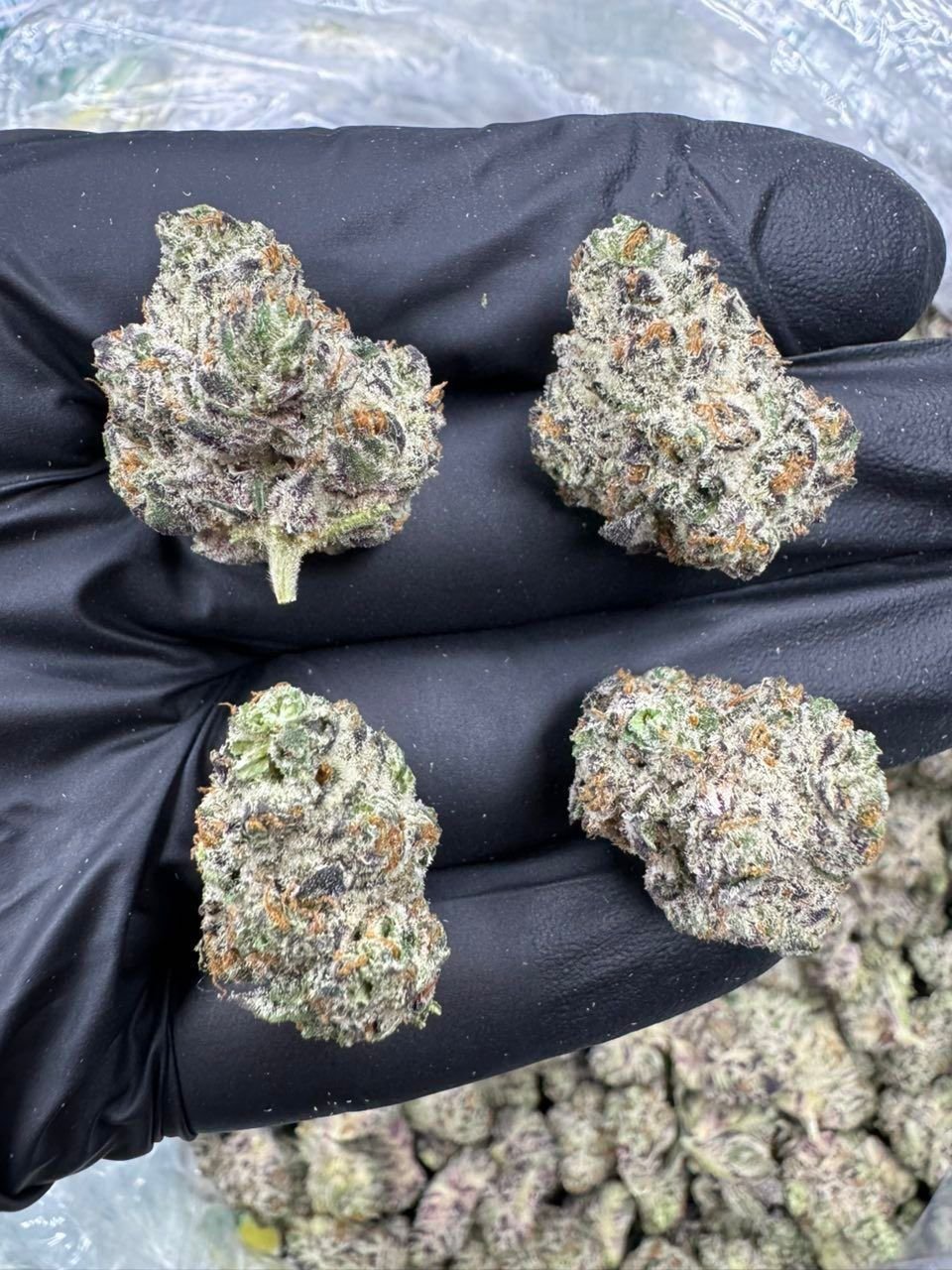 • Heavy frosting of trichomes that can make the buds appear almost pale or “white dusted,” especially after a proper cure.